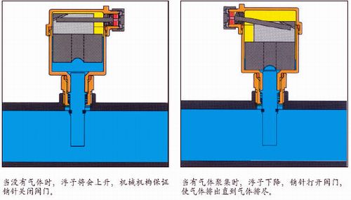 暖气系统及暖通空调系统的运行过程中,水在加热时释放的气体(如氢气、氧气等)带来的众多不良影响会损坏系统及降低热效应,这些气体如不能及时排掉会产生很多不良后果。诸如:由氧化导致的腐蚀;散热器里气袋的形成;热水循环不畅通不平衡,使某些散热器局部不热;管道带气运行时的噪声;循环泵的涡空现象。由此可见运用自动排气阀的重要作用。 ZP88自动排气阀利用浮子随液面升降之力,联动排气装置启闭,达到自动排气的目的。当气体被收集到阀体内时,由于气压作用,阀体内液面下移,浮子随之下降,其降至下限时,联动杠杆系统,打开排气阀阀口,放出带压气体,结果因阀内压力减小液面随之上移,浮子上升,在弹簧弹力作用下,排气口关闭。这样气体就不断被收集、排放、再收集、再排放,完成管道及设备系统的自动排气过程。