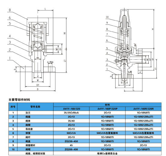 弹簧微启式高压安全阀(A41H-160/A41Y-320)适用于工作温度≤200℃的空气、氮氢混合气、水等介质的设备和管路上。A41Y-160P/A41Y-320P型弹簧微启式安全阀适于工作温度≤200℃有腐蚀性的气体或液体介质的设备和管路上,作为超压保护装置。当设备和管路内压力超过允许值时,阀门自动开启,继而全量排放,当压力降降至规定值时,阀门自动关闭,保证设备和管路的安全运行。